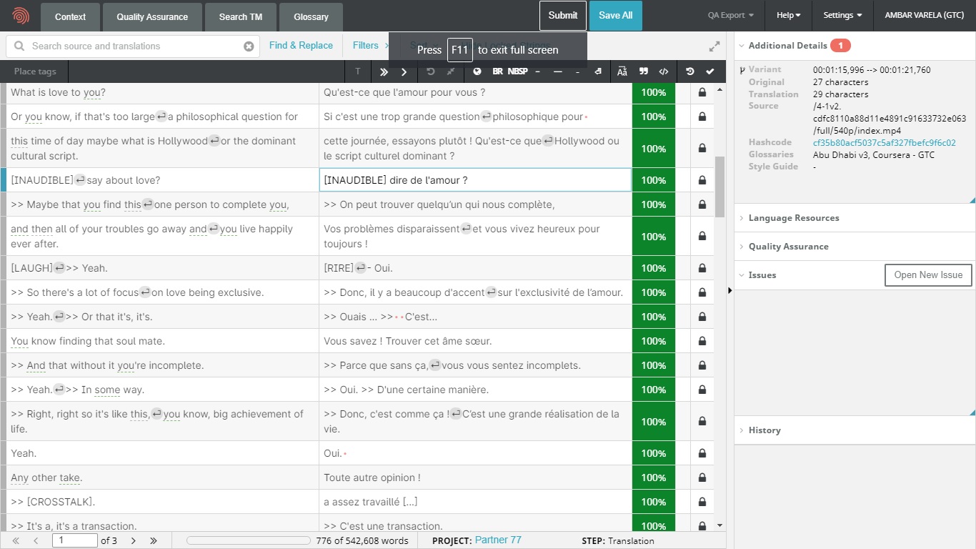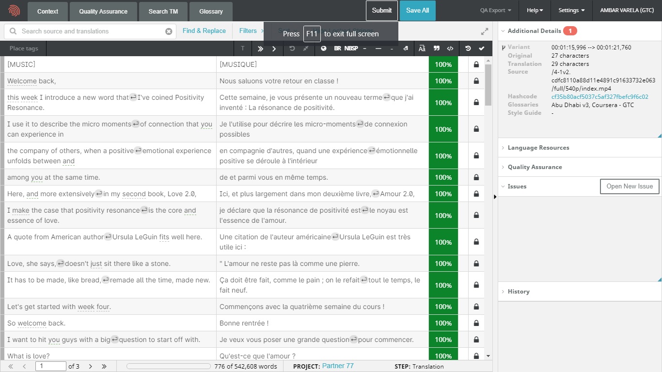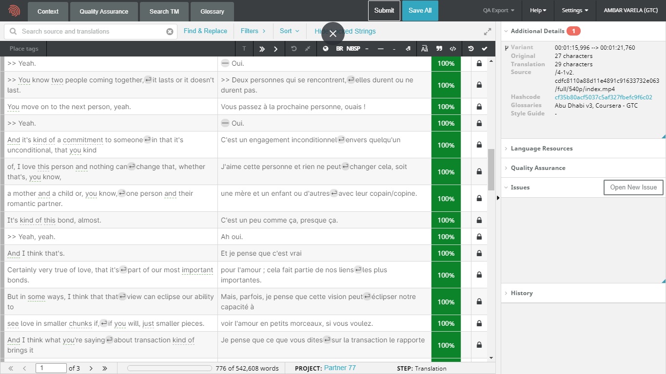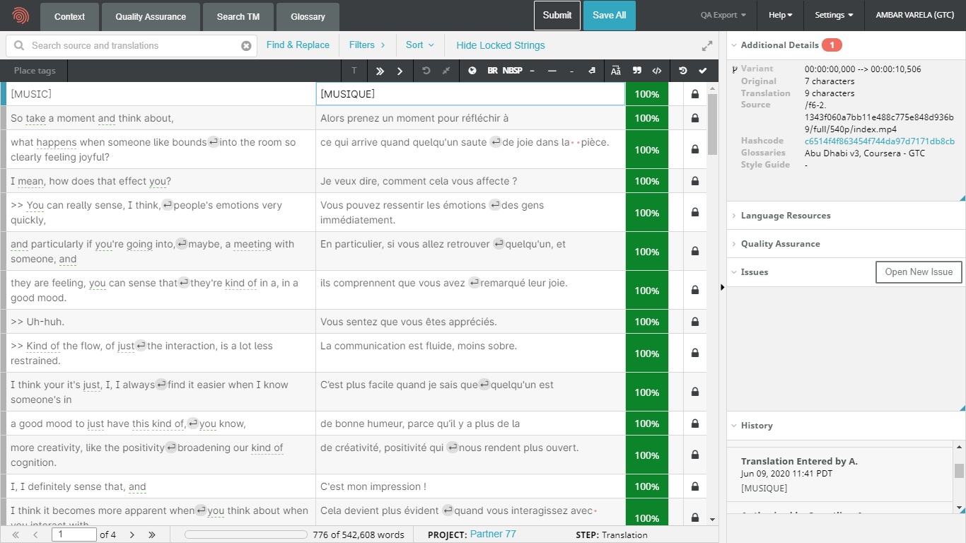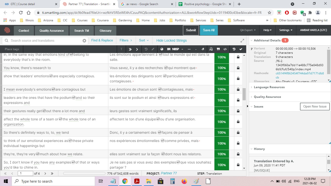 On this page, you will find different samples of medical, legal and business translations. I have been a Translator Volunteer at Coursera since 2016. I translated educational videos for the following courses: English for Business and Entrepreneurship, Conflict Resolution, Positive Psychology (into French, five lessons, 12,883 words), Teach English Now! Second Language Listening, Speaking, and Pronunciation, English for Journalism, and Teach English Now! Lesson Design and Assessment offered by the universities of Pennsylvania, California-Irvine, North Carolina at Chapel Hill, and Arizona State.